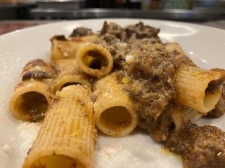 ボローニャに行った小生が、老舗超有名店を訪れた時に食べたボロネーゼからインスパイアされたものです。