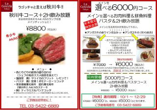 年末のお集まりは5000円〜食事とワインを楽しめるラゴッチャで!今年はタスマニア産のアンガス牛をメインにご用意しております!思い切ったことをするのがラゴッチャ東京!今回のお知らせは「!」が多いのもうなずける!